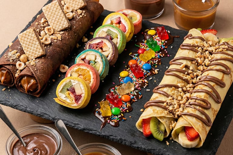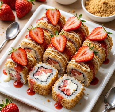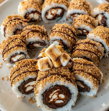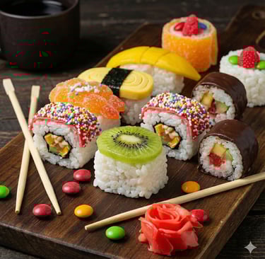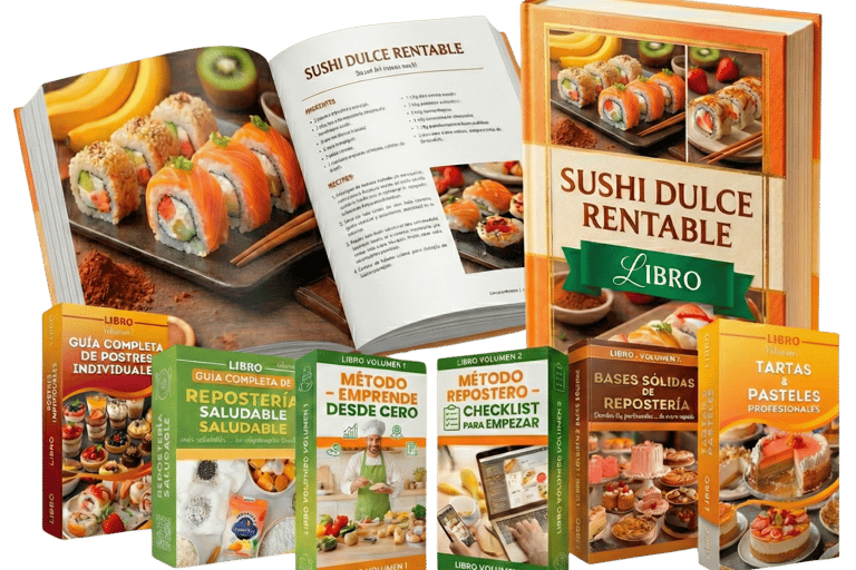 🔶 Aprende paso a paso a preparar distintos tipos de Sushi Dulce: con arroz, crepe, bizcocho, masa de galleta y combinaciones creativas, siguiendo recetas claras y detalladas